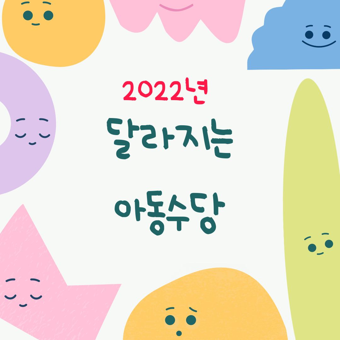2022년 아동수당의 지급 범위가 확대됨으로써 우리나라도 저출산 고령화 시대를 벗어날 수 있는 시대가 빠른 시일 내에 왔으면 좋겠습니다.