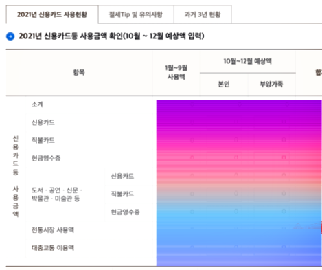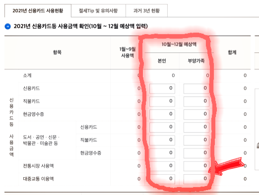5. 10~ 12월 예상 지출액을 항목별로 넣어보며 달라지는 공제 금액 확인하기
