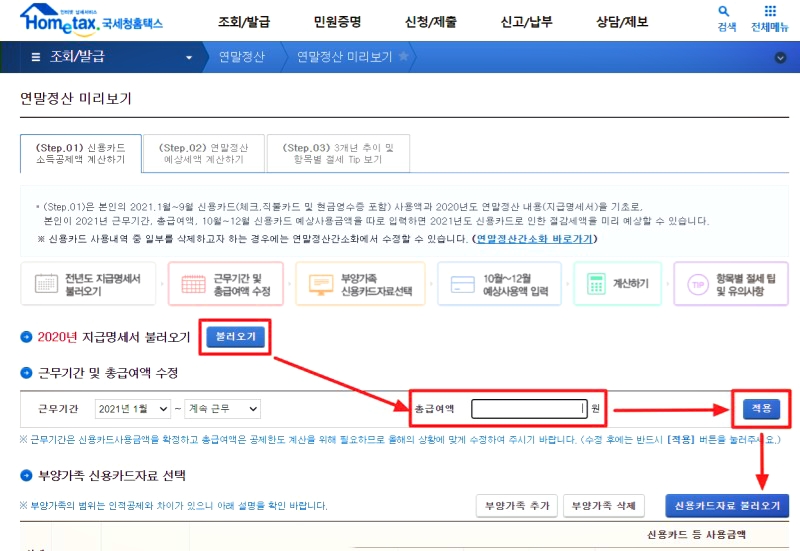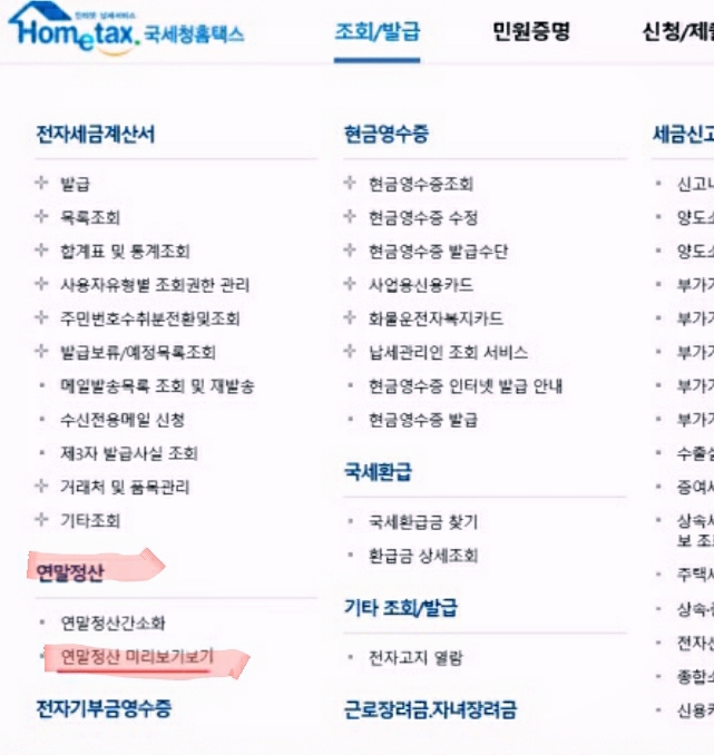 2021년연말정산 미리보기 서비스
