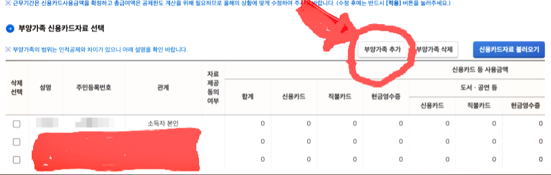 ☆부양가족 다 빼고, 본인만 넣기