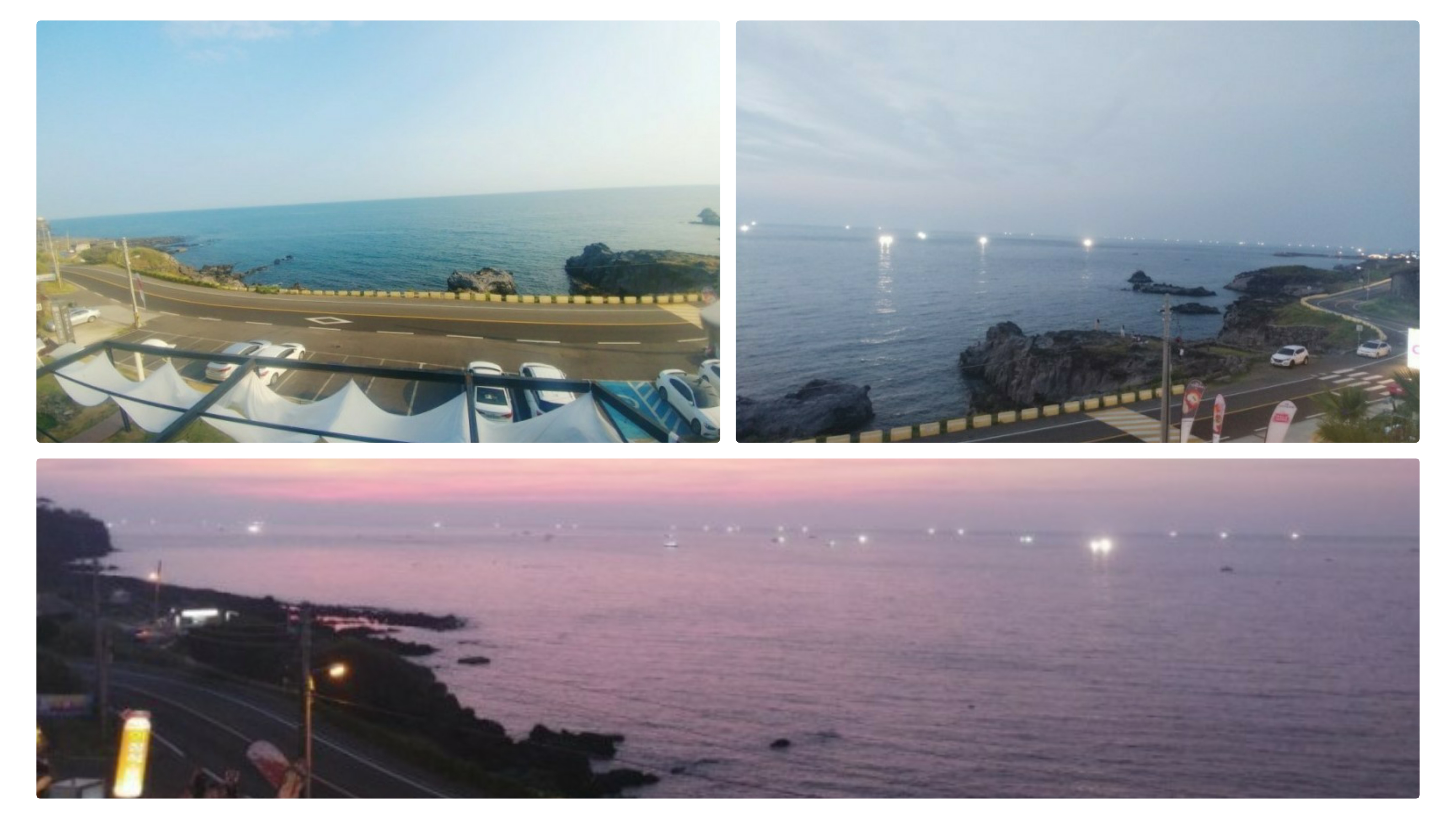바다도 보이고, 1층이 바로 카페고, 아침엔 조식도 주고.. 같은 건물이지만 시간대에 따라 바다의 느낌이 달르고 숙소에서 보는 풍경 또한 마찬가지로 여러가지 색을 보인 멋진 곳이었습니다.