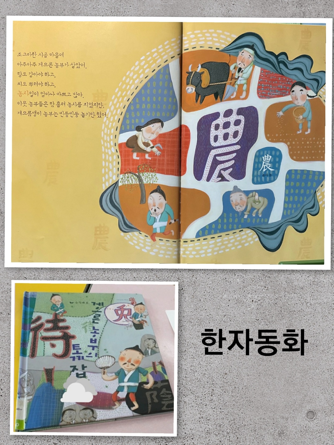 동화를 읽을 때 책에 나오는 한자를 하나하나 다 읽어보고 따라 해 보도록 하면, 책을 마지막 장까지 다 읽지 못할지도 모릅니다. 우리 아이들의 집중력이 그만큼 따라와 주지 못하기 때문이지요. 부모와 교사의 욕심을 조금은 내려놓고 아이들에게 익숙한 단어부터 따라 읽어보도록 합니다.